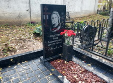 Затем мы наклеили на надгробье предварительно изготовленный трафарет, содержащий текст с основной информацией об усопшей.