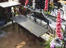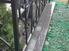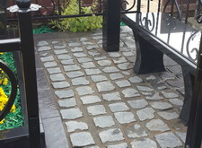 Покрасить ограду, так как чаще всего при установке ограды красят транспортировочной краской, которая приходит в негодность через год. Облицевать бетонный цоколь и бетон обрамляющий цветник. В данном случае для этого мы использовали керамогранит. Установили гранитные лавочку и столик. Посадили две туи и кустовые хризантемы в цветник. Заменили пластиковую вазу на гранитную. Уложили гранитную брусчатку на пол.