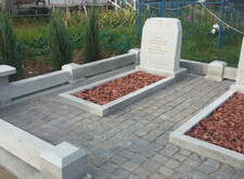 Мемориальный комплекс из светло-серого гранита на церковной земле
