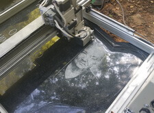Далее привозим гравировальный станок, берём уже подготовленную фотографию, наносим её на гранит.