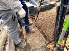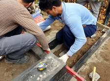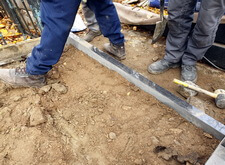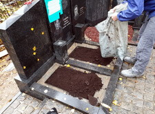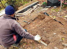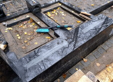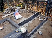 В первую очередь мы начали с подготовки надёжного основания для будущего памятника. Для этого мы раскопали необходимую часть места захоронения.