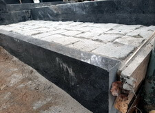 В ходе следующего этапа мы практически завершили работы с наземным покрытием: уложили всю территорию участка гранитной брусчаткой, а перед основаниями для новых памятников соорудили прямоугольные цветники, борта которых были выполнены из чёрного гранита.