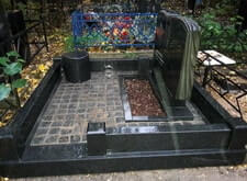 Покосившийся памятник, проржавевшая ограда, сорняки |