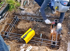 Заливаем каркас бетоном так, чтобы он был вровень с землёй и со стороны фундамента было абсолютно не видно.