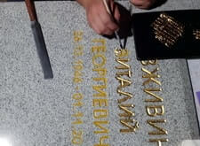 Покрытие надписи сусальным золотом,