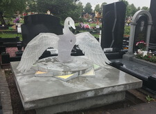 Очень сложная и интересная работа по созданию уникального мемориального комплекса. Он на столько уникальный и запоминающийся, что если на Троекуровском кладбище (богемное кладбище Москвы), где установлен этот комплекс, вы спросите у любого служащего где находится могила с лебедем, вам легко покажут дорогу.