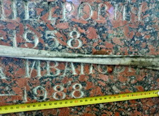 Обжигаем ограждение, параллельно с этим наносим на надгробье новую надпись.